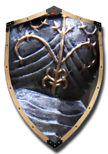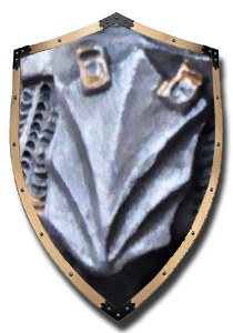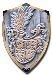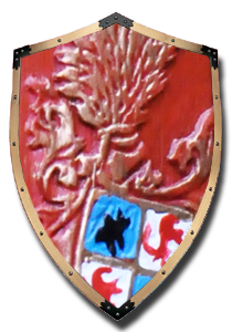 Blazonul familiei Huniade prezinta un corb cu un inel de aur in cioc (legenda spune ca un corb a smuls inelul din mana tanarului Iancu, acesta a ucis pasarea si pentru a comemora incidentul, a ales corbul ca simbol) si “leii de Bistrita”, adaugati la numirea lui Iancu in functia de conte de Bistrita Nasaud si Capitan general al Regatului.